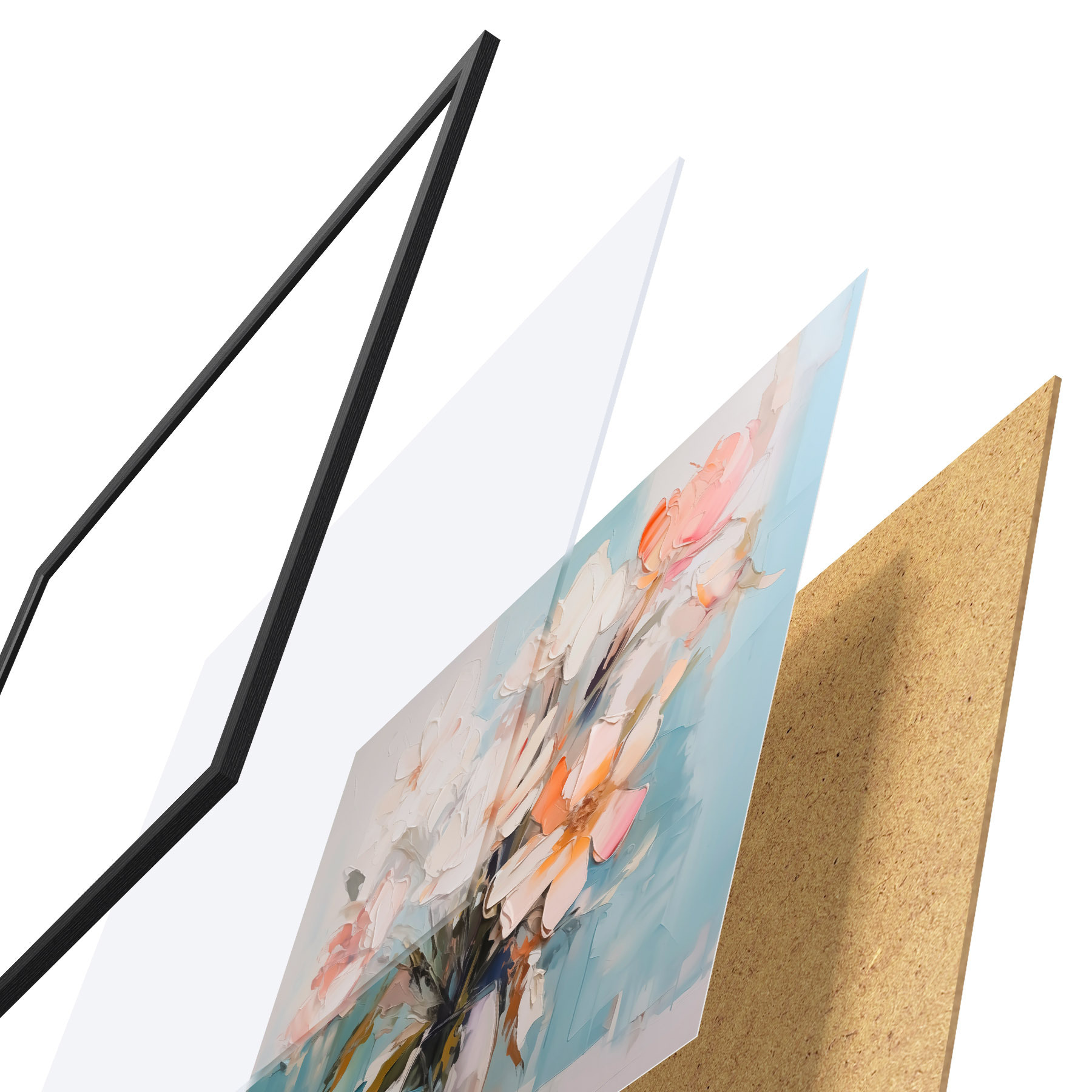 Il poster è composto da cornice, plexiglass, immagine stampata e supporto in truciolato. Il poster può essere immediatamente appeso alla parete grazie ai supporti sul retro.