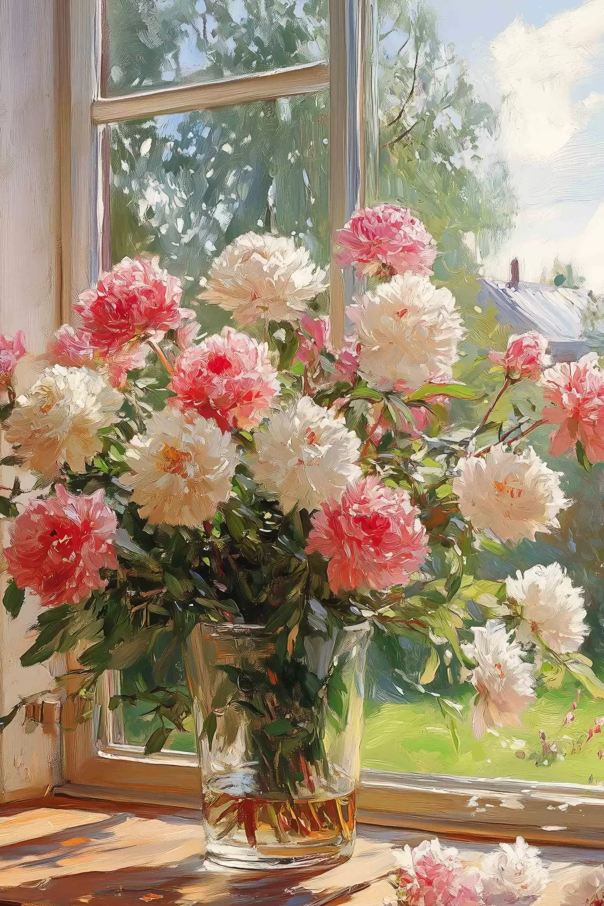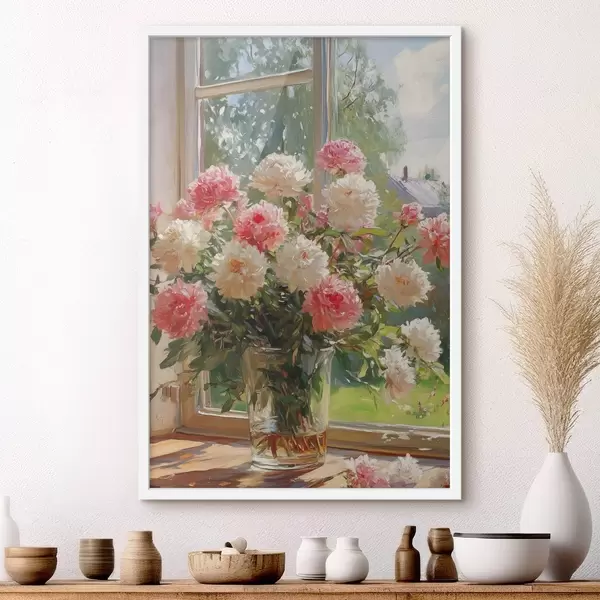 Poster Bouquet sulla finestra nello stile della pittura ad olio Nr f42978