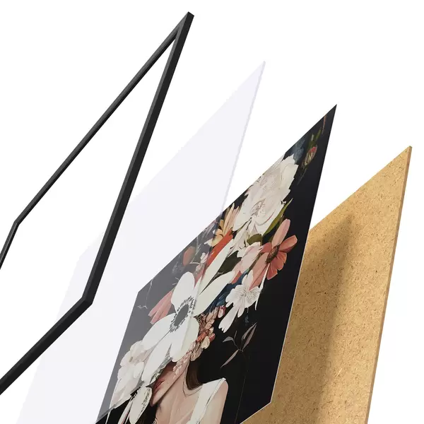 Il poster è composto da cornice, plexiglass, immagine stampata e supporto in truciolato. Il poster può essere immediatamente appeso alla parete grazie ai supporti sul retro.