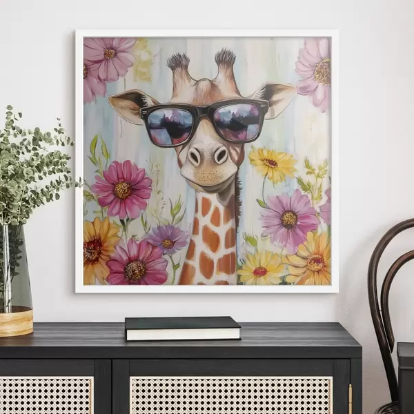 Poster Giraffa con occhiali vicino ai fiori Nr f42991