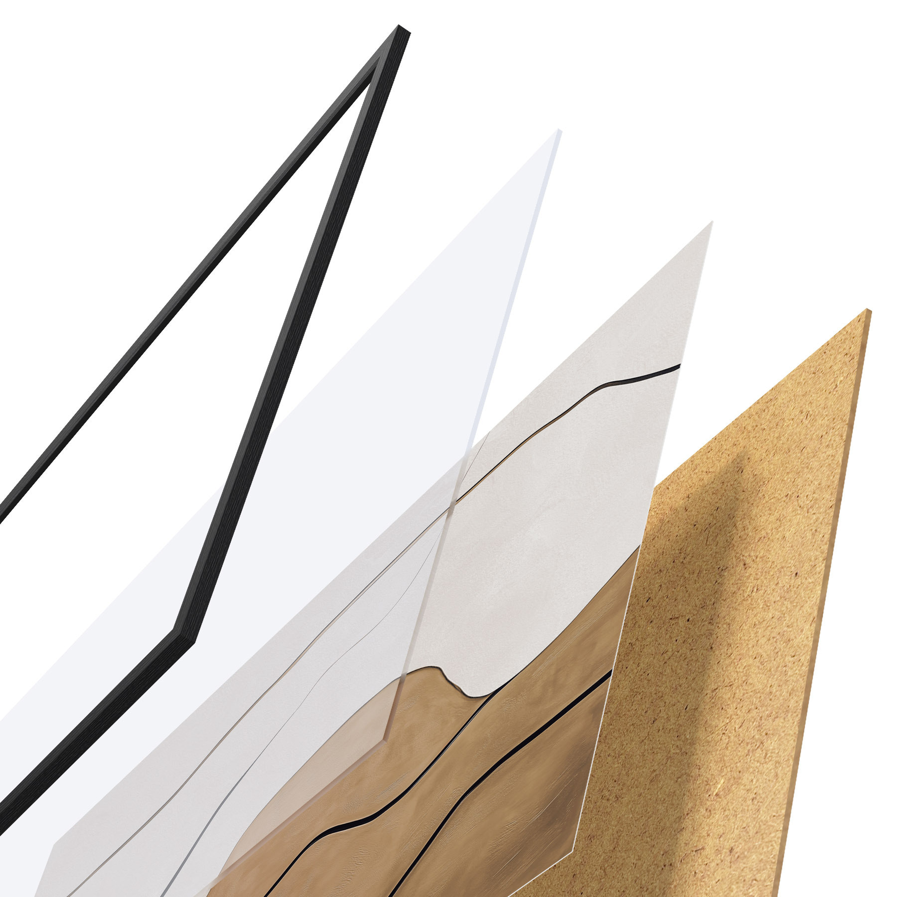 Il poster è composto da cornice, plexiglass, immagine stampata e supporto in truciolato. Il poster può essere immediatamente appeso alla parete grazie ai supporti sul retro.