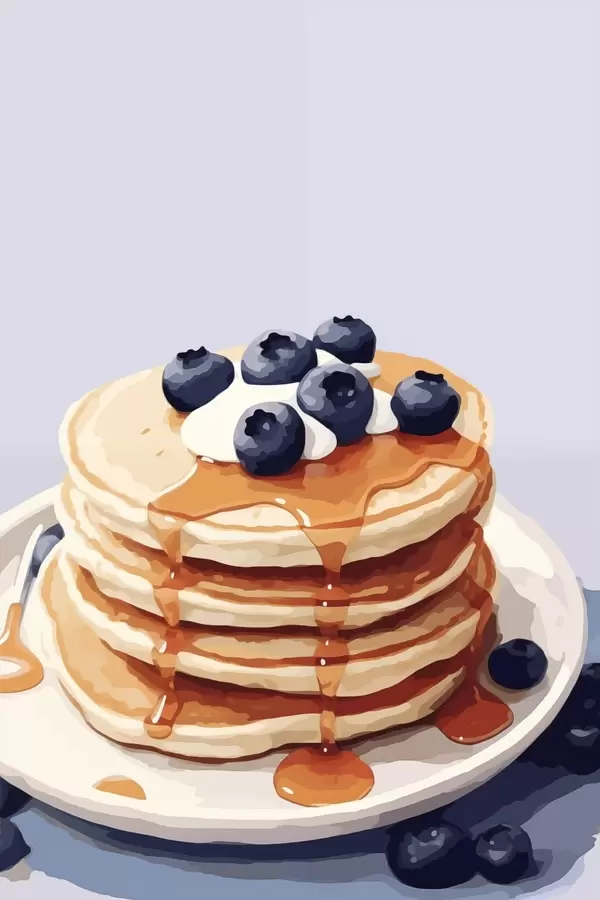 Poster Pancake con sciroppo e mirtilli in un piatto Nr f43009