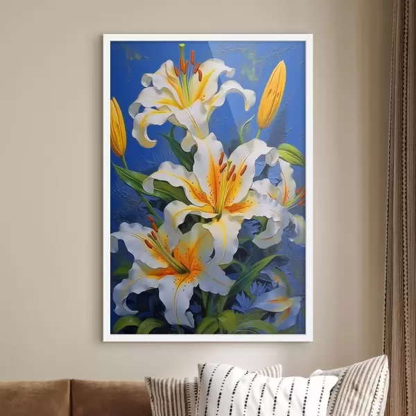 Poster Gigli bianchi su sfondo blu f43018