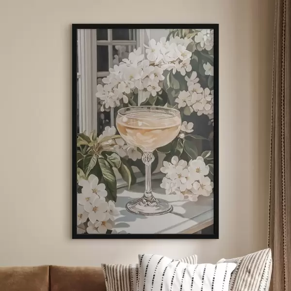 Poster Bicchiere di champagne, vintage, stile acquerello, fiori bianchi Nr f43051