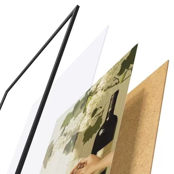Il poster è composto da cornice, plexiglass, immagine stampata e supporto in truciolato. Il poster può essere immediatamente appeso alla parete grazie ai supporti sul retro.