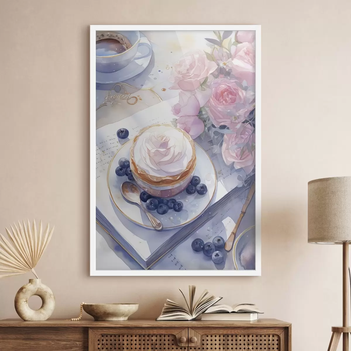 Poster Cupcake ai mirtilli, stile boho, acquerello, rose rosa, poetico Nr f43053