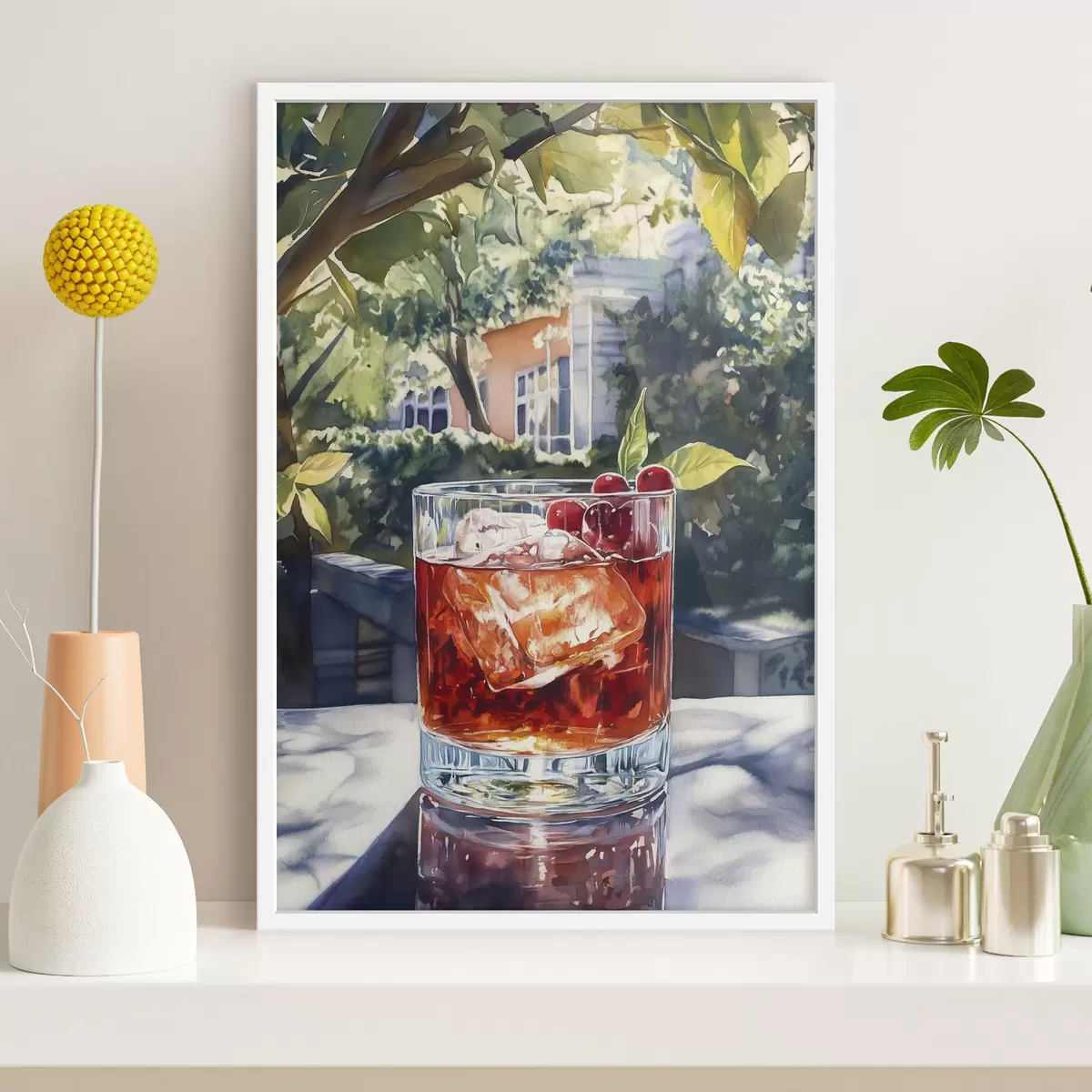 Poster Cocktail con bacche, stile acquerello, città estetica, natura estiva Nr f43059