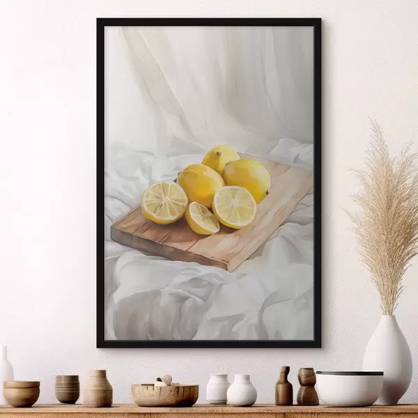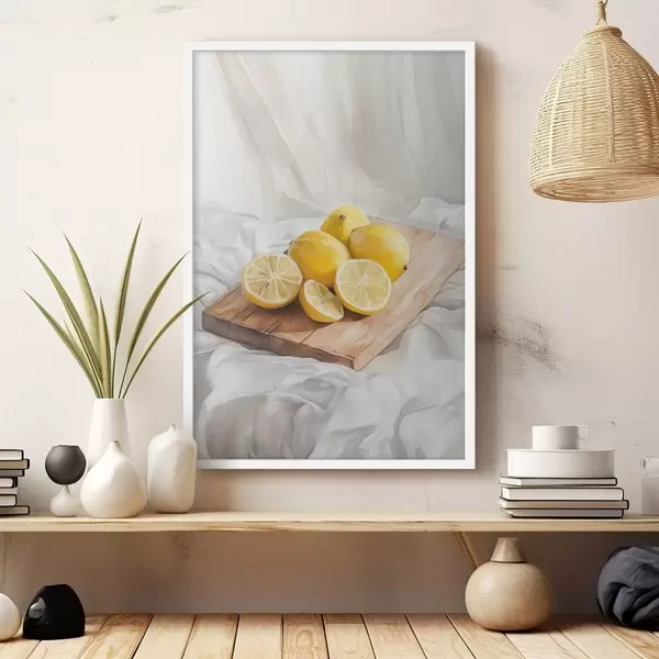 Poster Limoni estetici sulla tavola di legno, decorazione della casa, illuminazione naturale Nr f43062