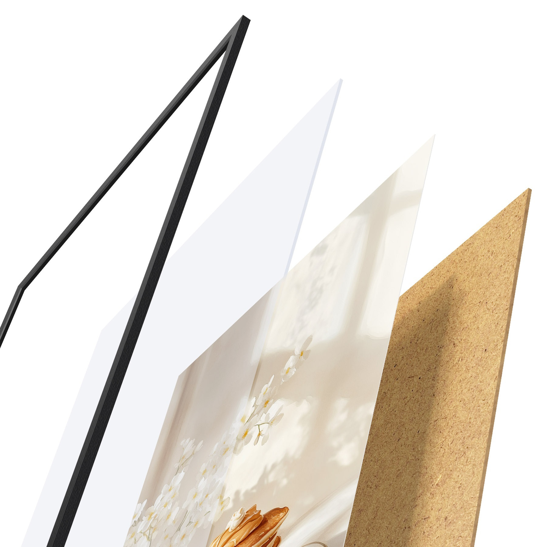 Il poster è composto da cornice, plexiglass, immagine stampata e supporto in truciolato. Il poster può essere immediatamente appeso alla parete grazie ai supporti sul retro.