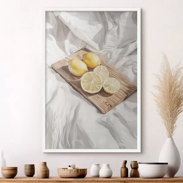 Poster Limoni sulla tavola di legno, acquerello, stile rustico f43064