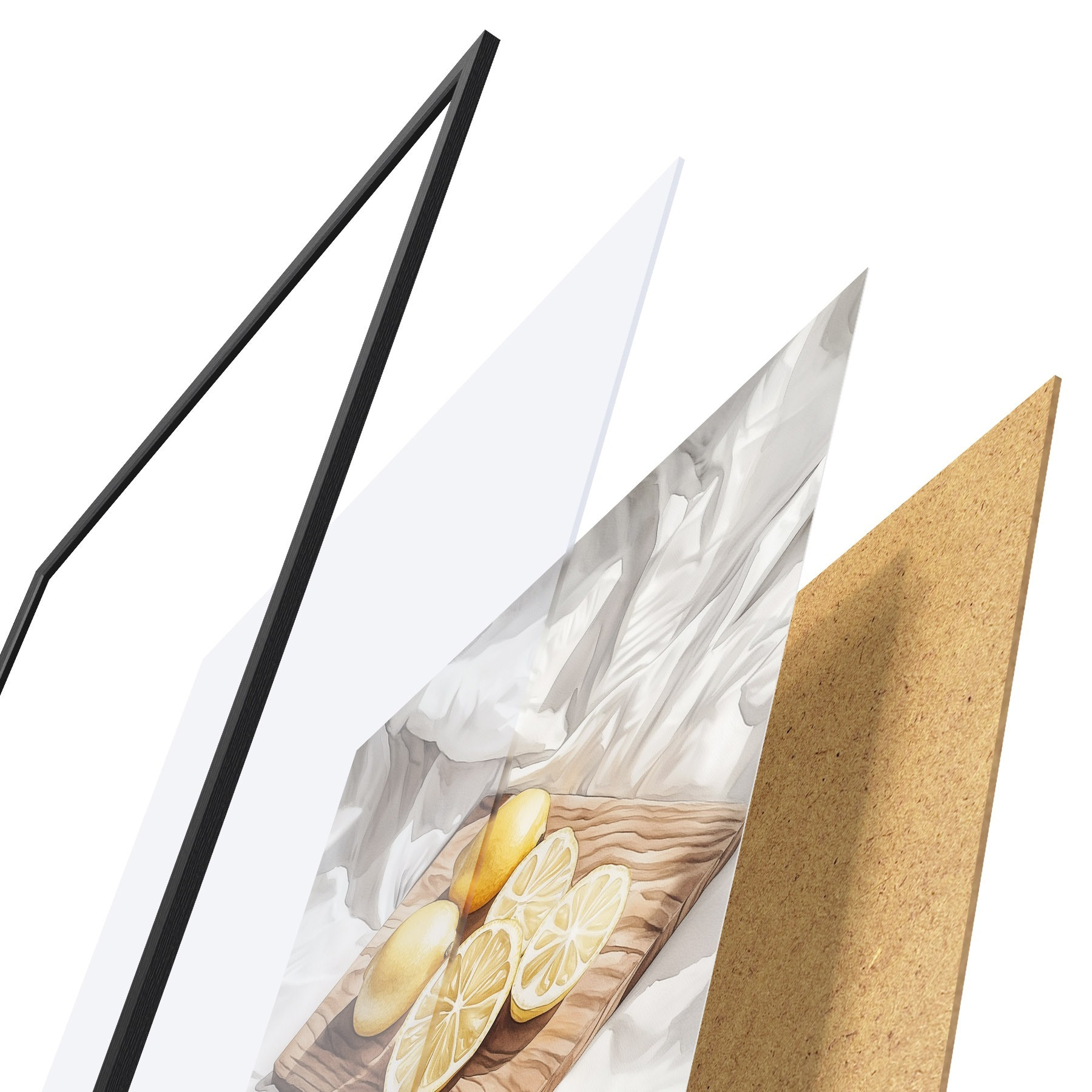 Il poster è composto da cornice, plexiglass, immagine stampata e supporto in truciolato. Il poster può essere immediatamente appeso alla parete grazie ai supporti sul retro.