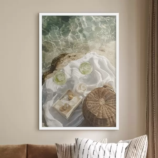 Poster Estetica estiva, onde dell'oceano, spiaggia, cocktail, stile acquerello f43069