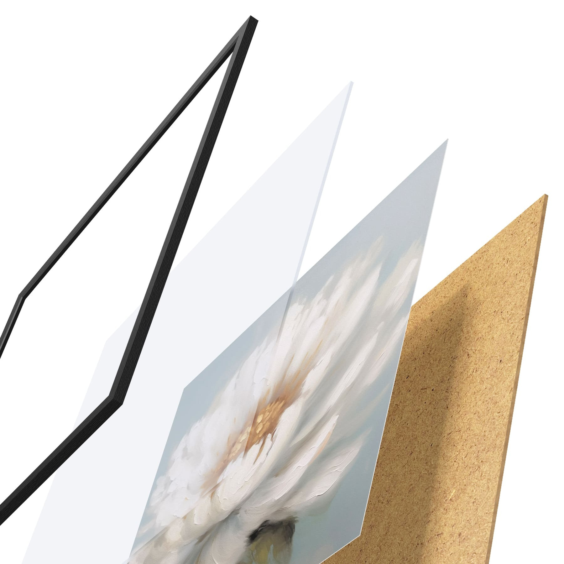 Il poster è composto da cornice, plexiglass, immagine stampata e supporto in truciolato. Il poster può essere immediatamente appeso alla parete grazie ai supporti sul retro.