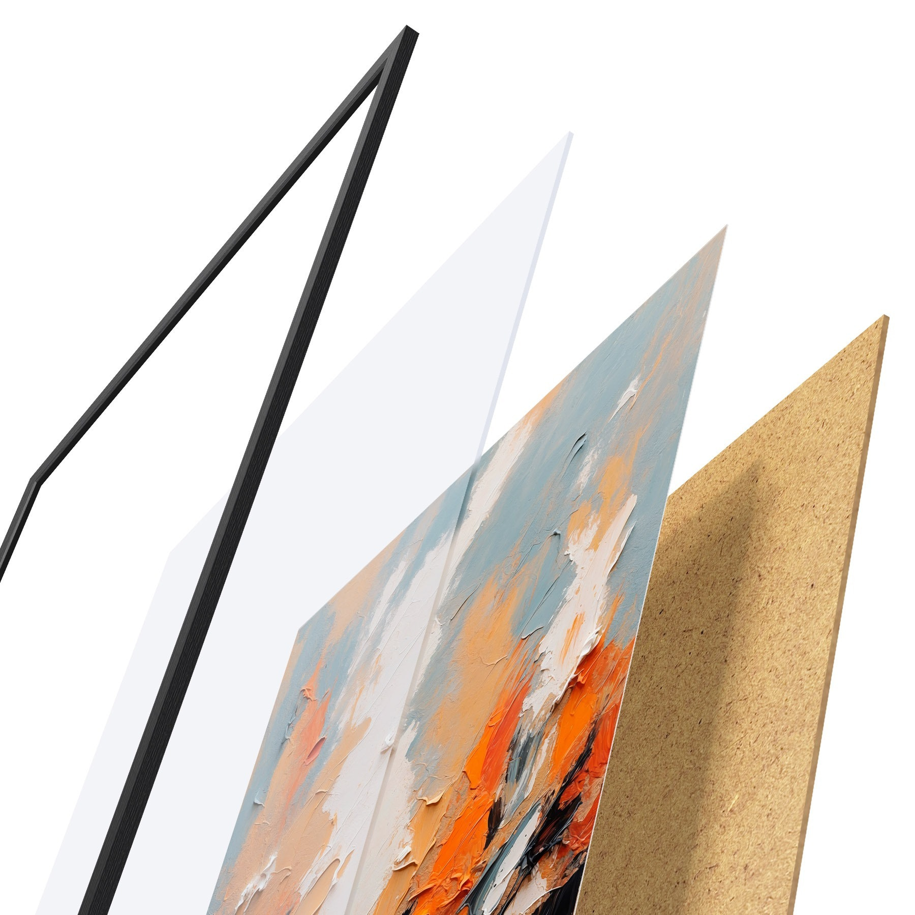 Il poster è composto da cornice, plexiglass, immagine stampata e supporto in truciolato. Il poster può essere immediatamente appeso alla parete grazie ai supporti sul retro.