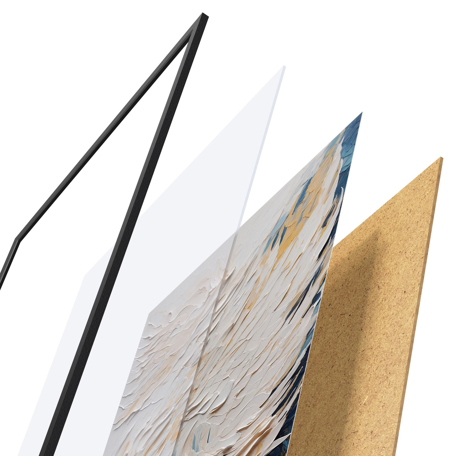 Il poster è composto da cornice, plexiglass, immagine stampata e supporto in truciolato. Il poster può essere immediatamente appeso alla parete grazie ai supporti sul retro.