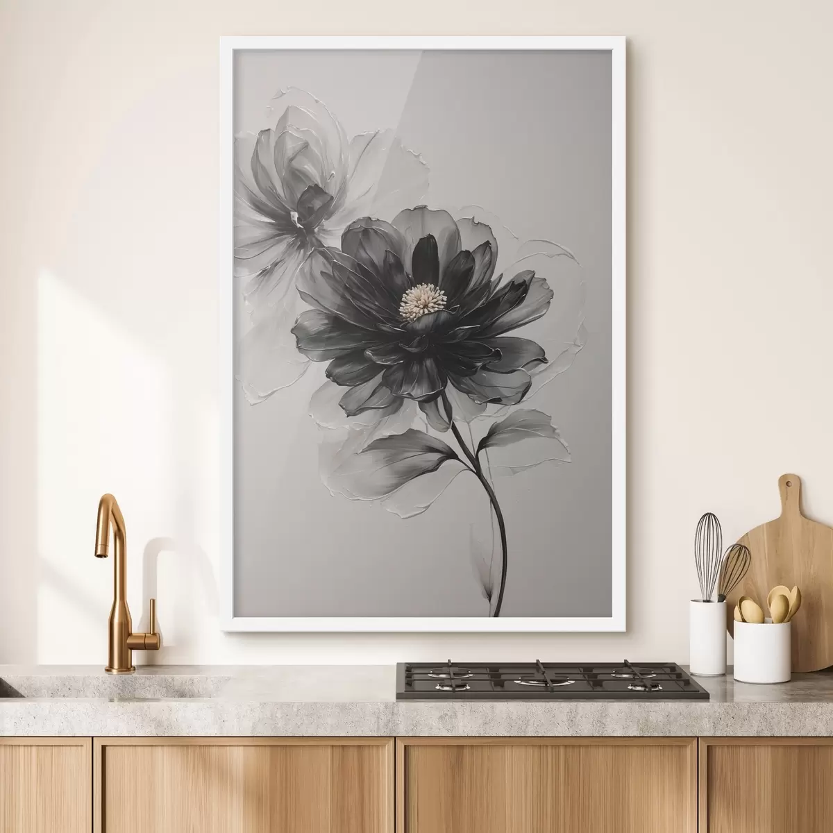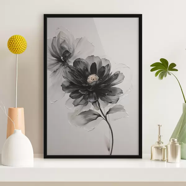 Poster Fiore nero trasparente su sfondo bianco f43099