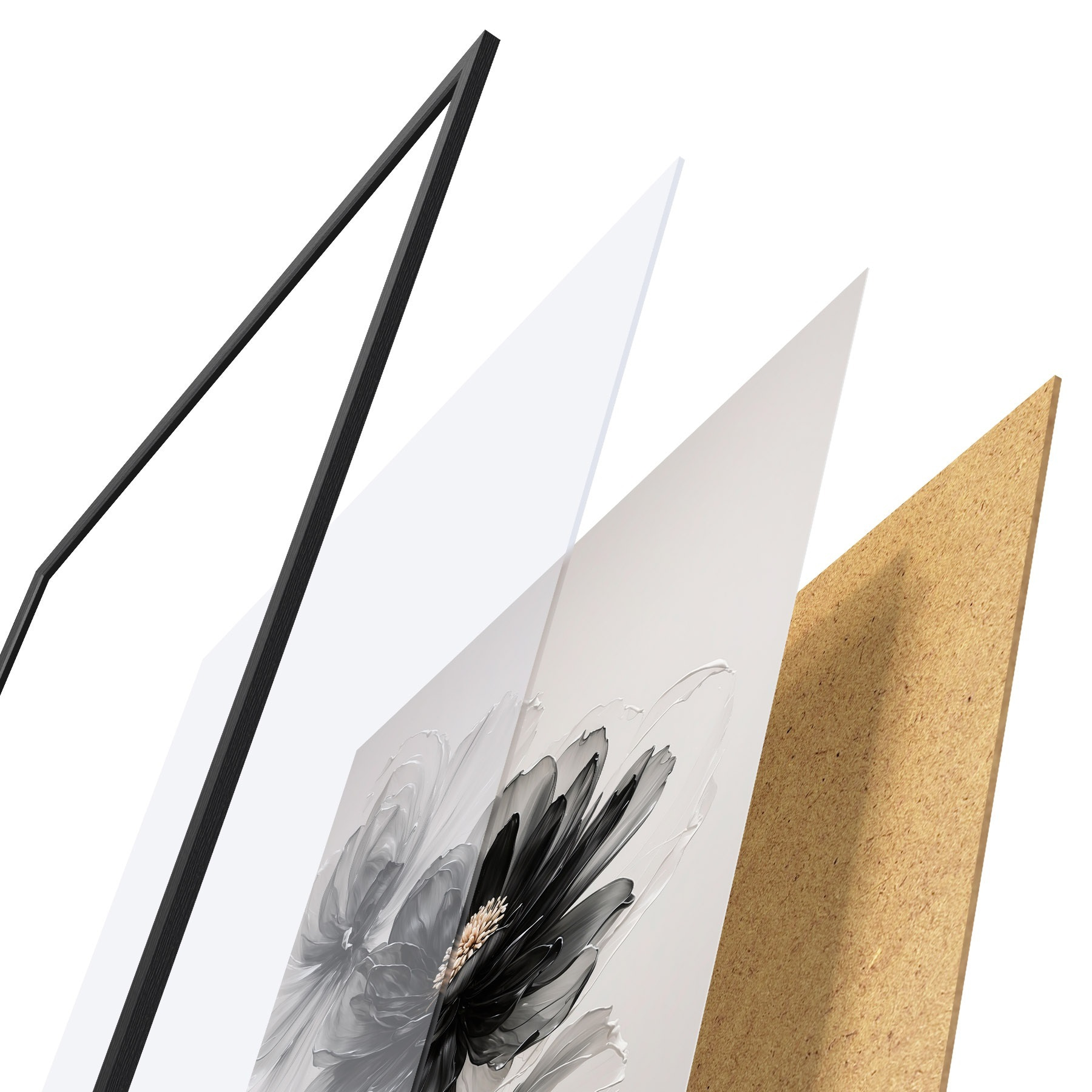 Il poster è composto da cornice, plexiglass, immagine stampata e supporto in truciolato. Il poster può essere immediatamente appeso alla parete grazie ai supporti sul retro.