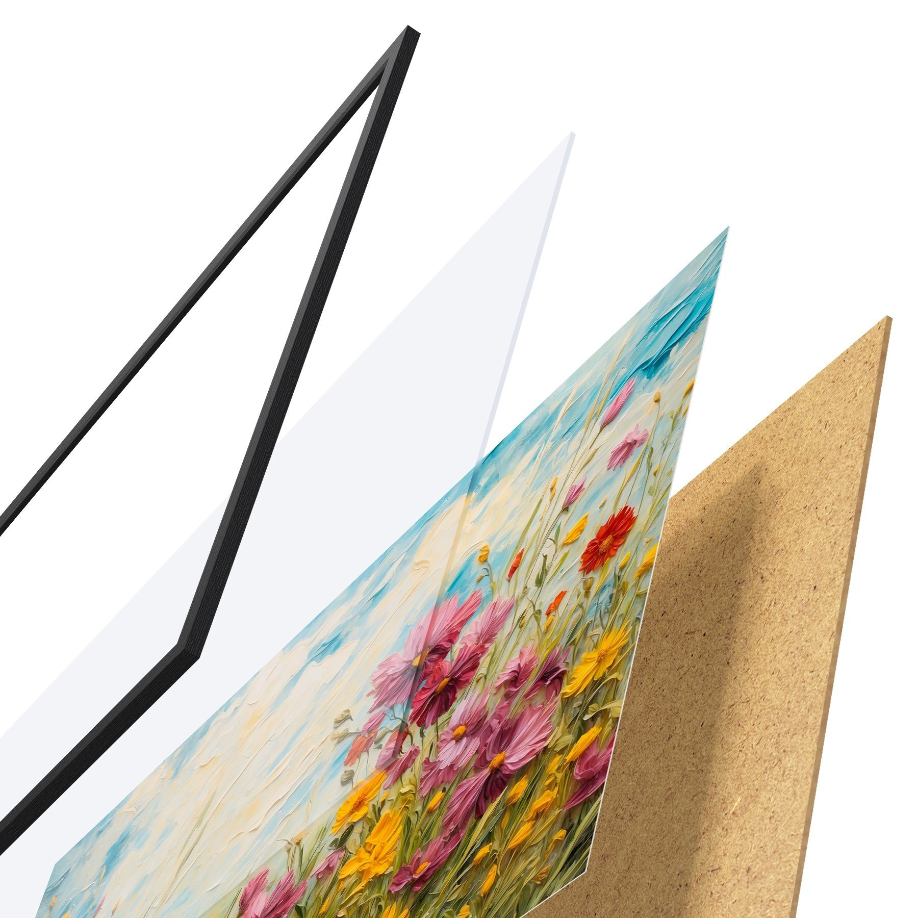 Il poster è composto da cornice, plexiglass, immagine stampata e supporto in truciolato. Il poster può essere immediatamente appeso alla parete grazie ai supporti sul retro.
