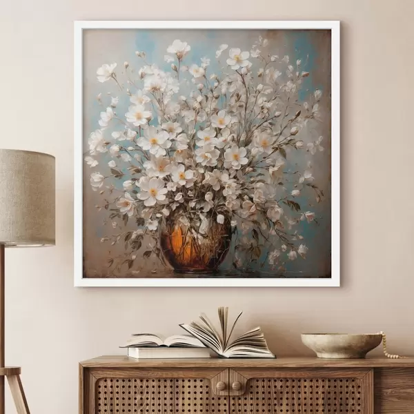 Poster Fiori bianchi in vaso su sfondo acrilico f43107