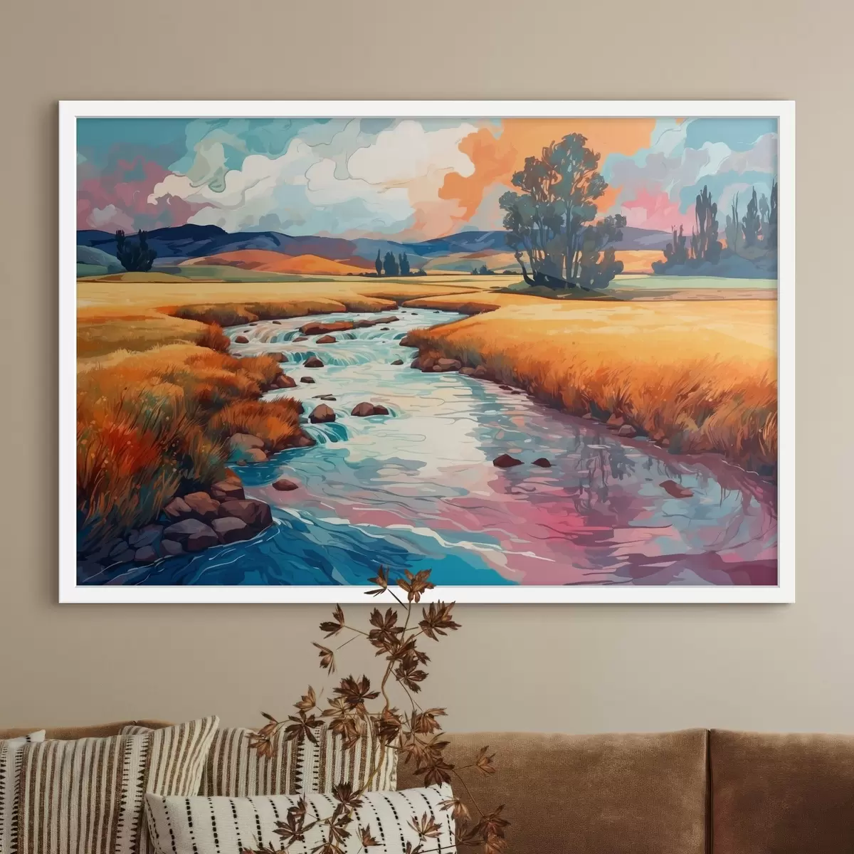 Poster Ruscello nel campo nello stile della pittura ad acquerello f43110