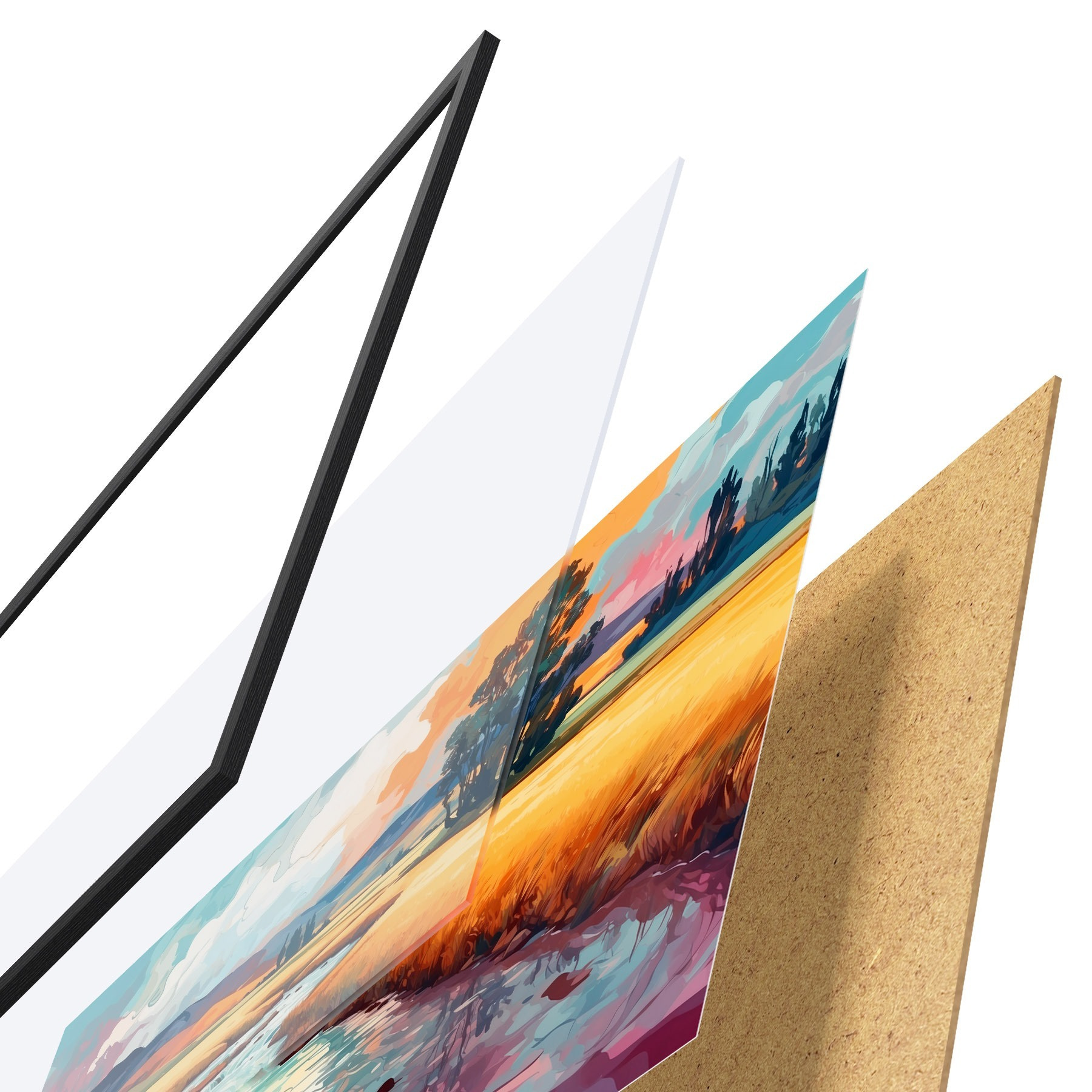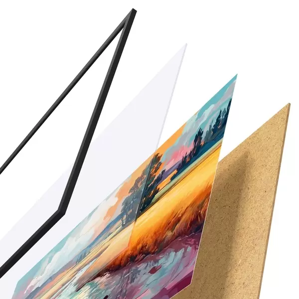 Il poster è composto da cornice, plexiglass, immagine stampata e supporto in truciolato. Il poster può essere immediatamente appeso alla parete grazie ai supporti sul retro.