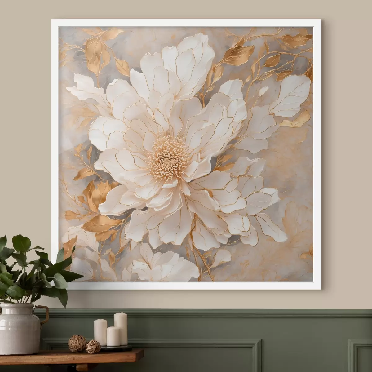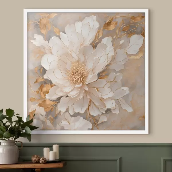 Poster Fiore bianco con foglie in stile pittura acrilica Nr f43115