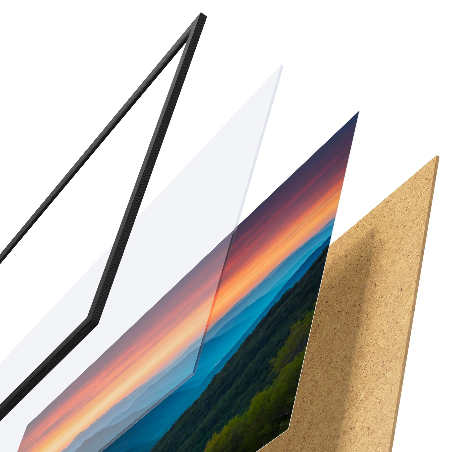 Il poster è composto da cornice, plexiglass, immagine stampata e supporto in truciolato. Il poster può essere immediatamente appeso alla parete grazie ai supporti sul retro.