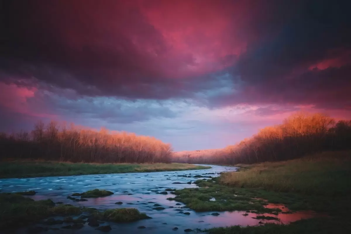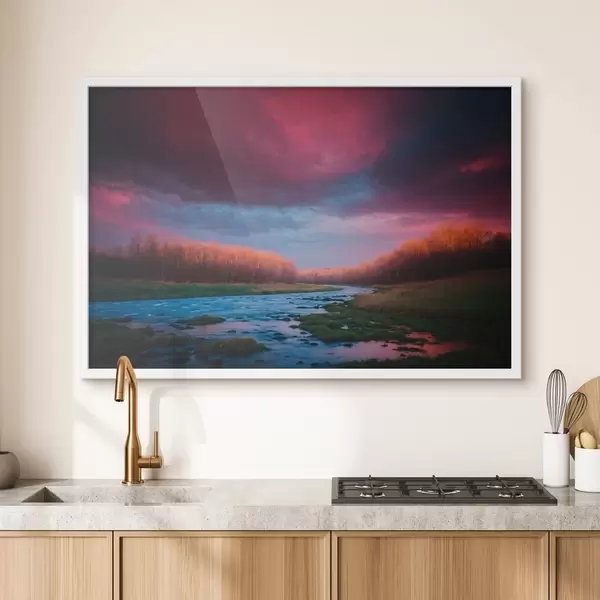 Poster Ruscello nel campo sullo sfondo del cielo viola Nr f43120