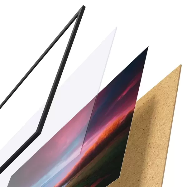Il poster è composto da cornice, plexiglass, immagine stampata e supporto in truciolato. Il poster può essere immediatamente appeso alla parete grazie ai supporti sul retro.