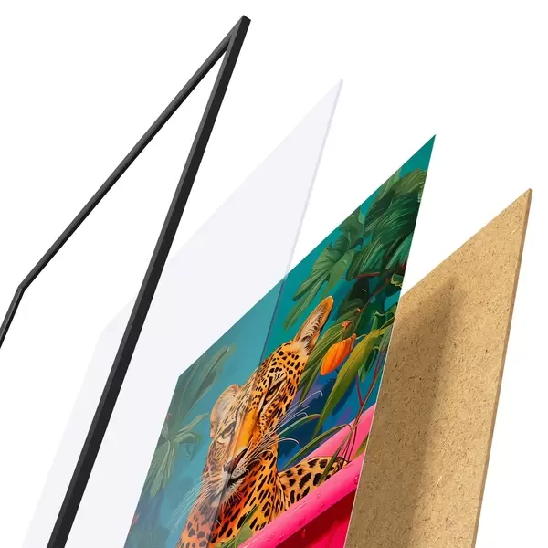 Il poster è composto da cornice, plexiglass, immagine stampata e supporto in truciolato. Il poster può essere immediatamente appeso alla parete grazie ai supporti sul retro.