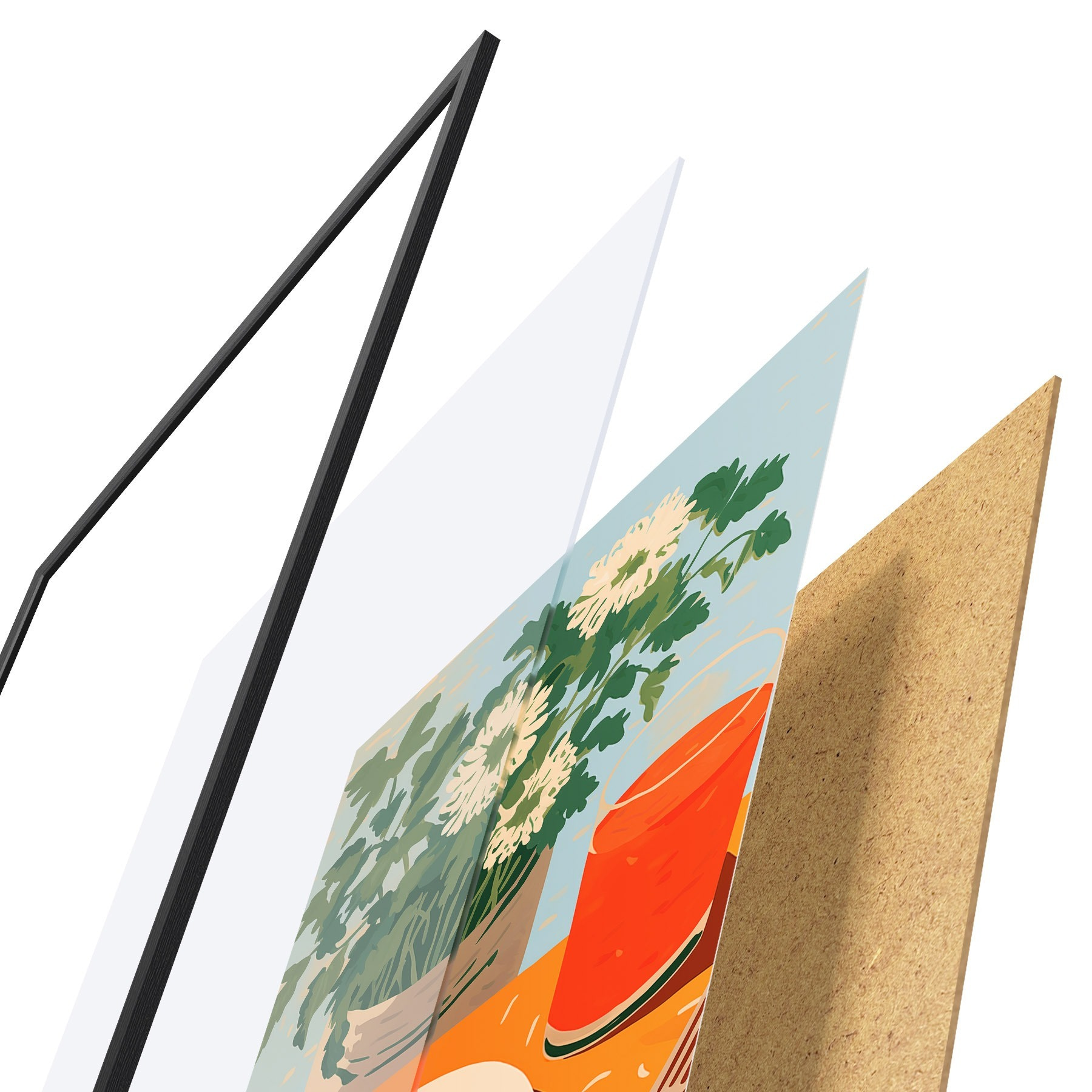 Il poster è composto da cornice, plexiglass, immagine stampata e supporto in truciolato. Il poster può essere immediatamente appeso alla parete grazie ai supporti sul retro.
