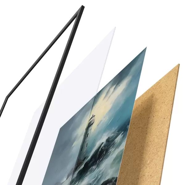 Il poster è composto da cornice, plexiglass, immagine stampata e supporto in truciolato. Il poster può essere immediatamente appeso alla parete grazie ai supporti sul retro.