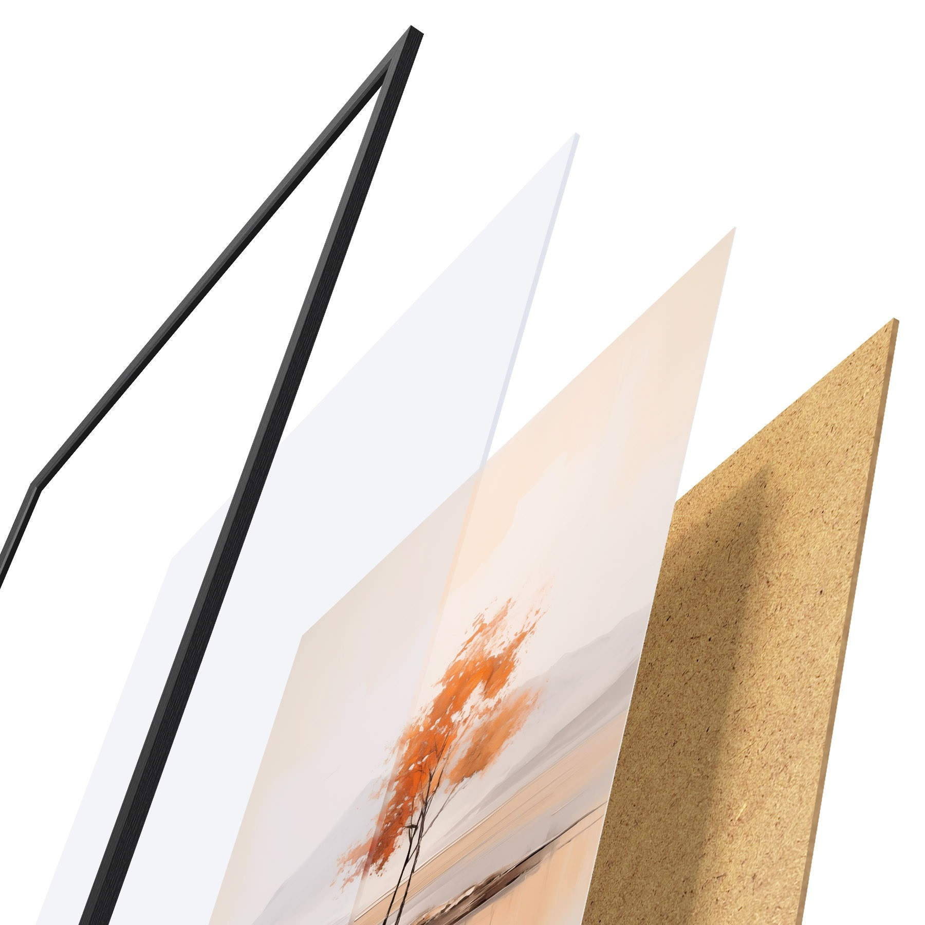 Il poster è composto da cornice, plexiglass, immagine stampata e supporto in truciolato. Il poster può essere immediatamente appeso alla parete grazie ai supporti sul retro.
