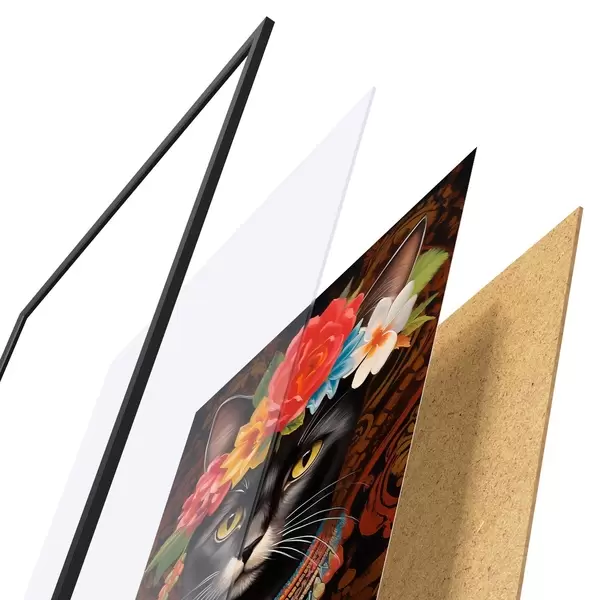 Il poster è composto da cornice, plexiglass, immagine stampata e supporto in truciolato. Il poster può essere immediatamente appeso alla parete grazie ai supporti sul retro.