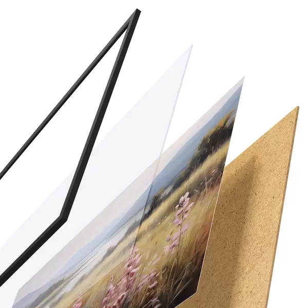 Il poster è composto da cornice, plexiglass, immagine stampata e supporto in truciolato. Il poster può essere immediatamente appeso alla parete grazie ai supporti sul retro.