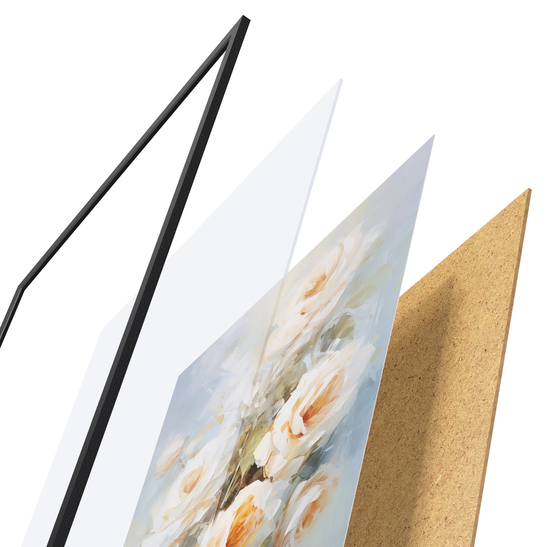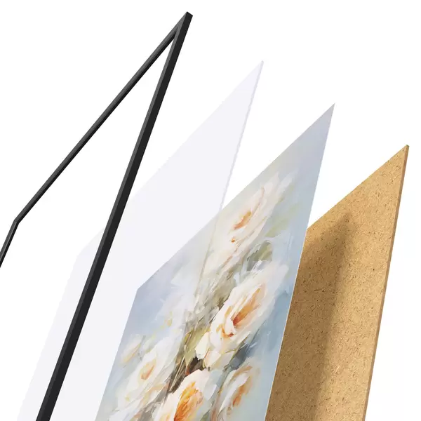 Il poster è composto da cornice, plexiglass, immagine stampata e supporto in truciolato. Il poster può essere immediatamente appeso alla parete grazie ai supporti sul retro.