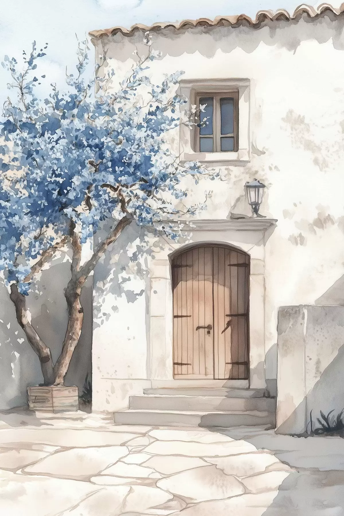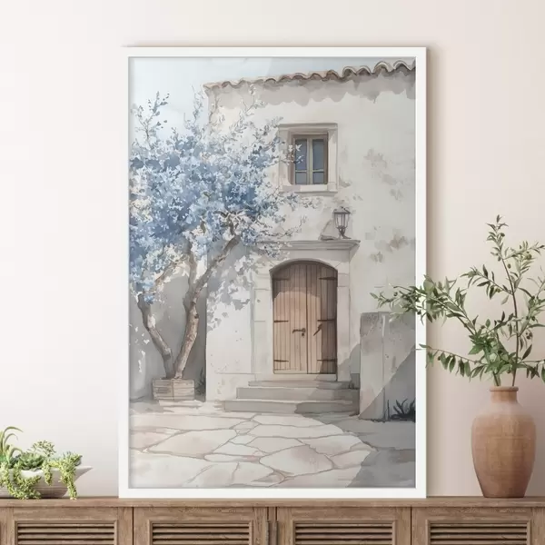 Poster Casa greca con bell'albero, architettura, stile acquerello f43178
