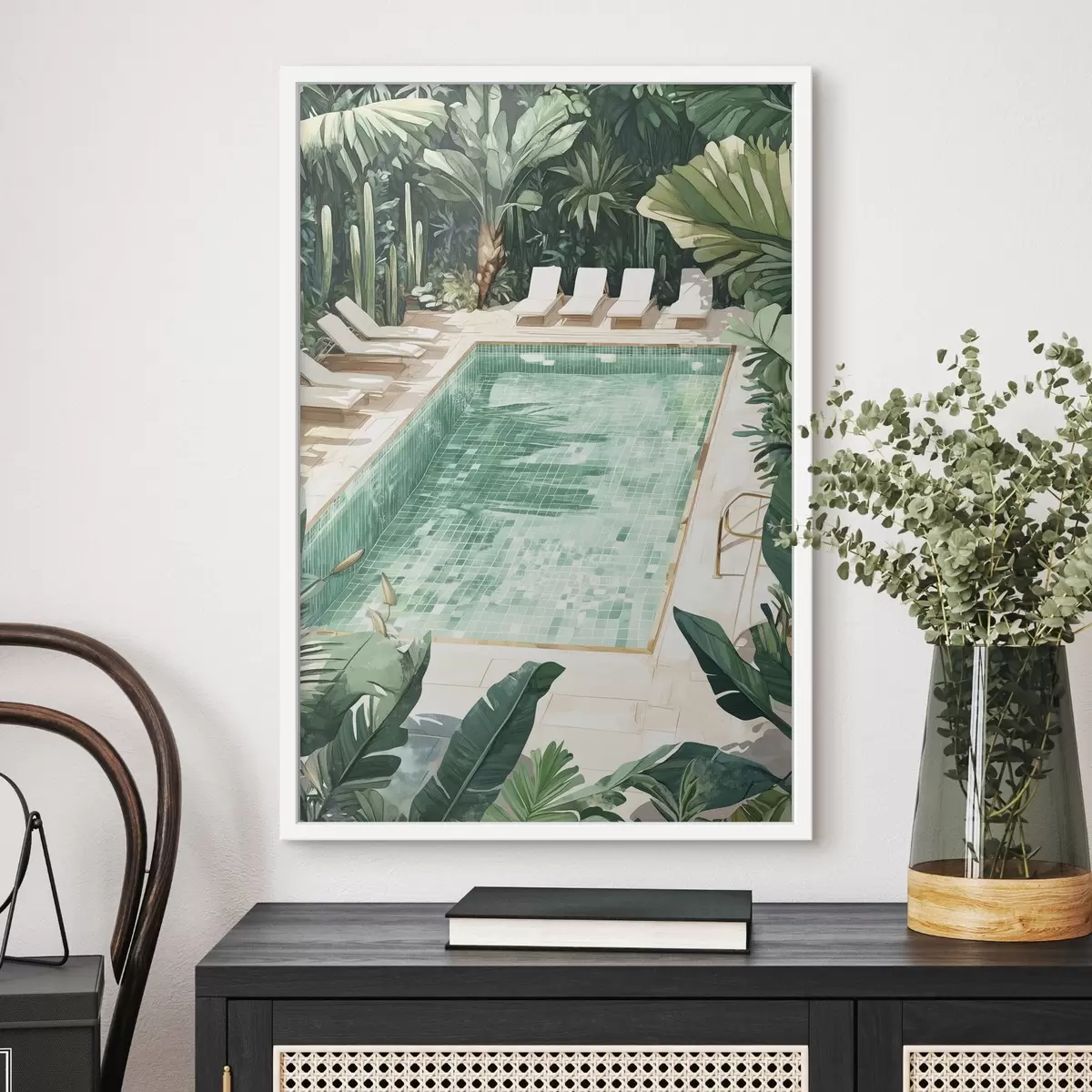 Poster Piscina estiva nel giardino verde, stile vintage, acquerello Nr f43189