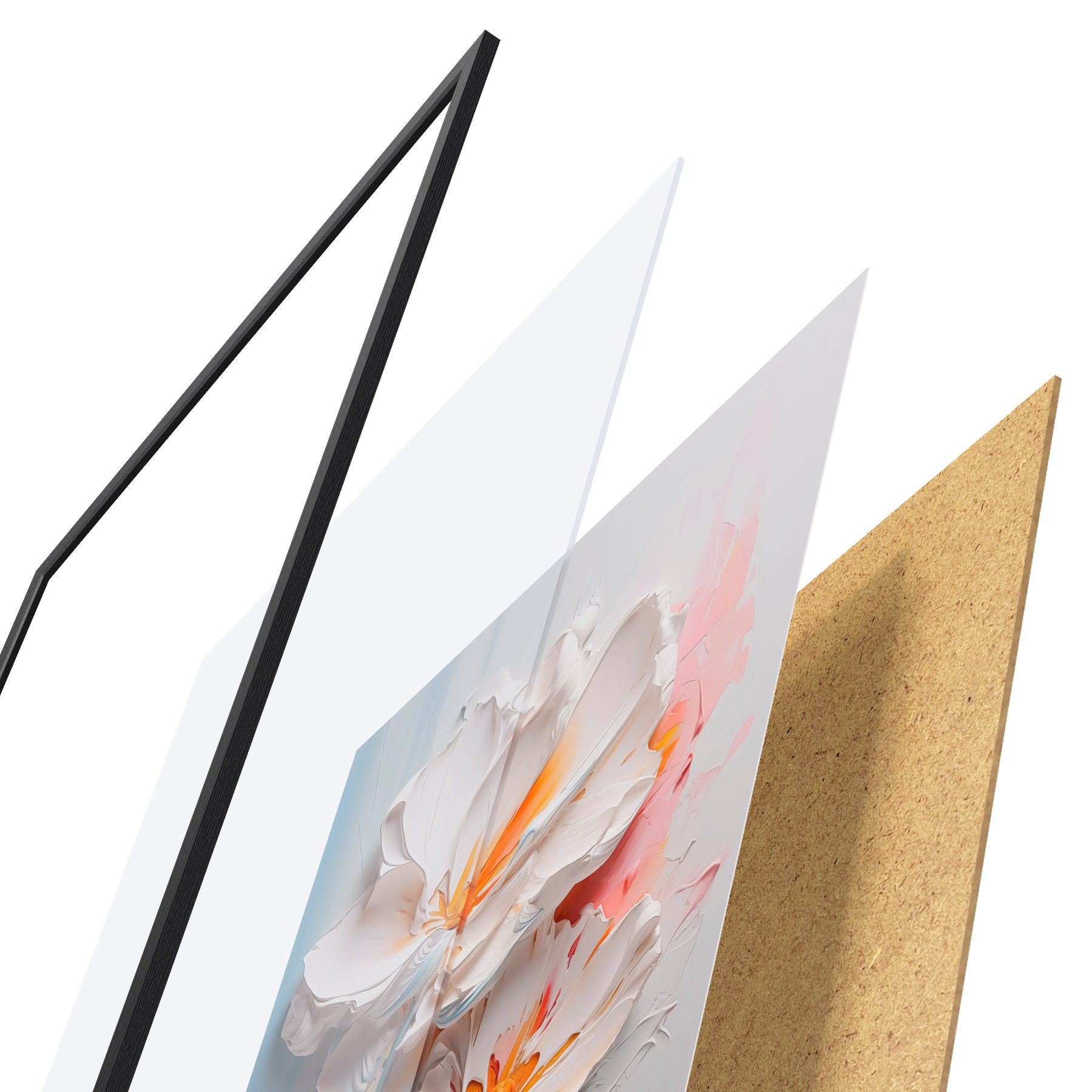 Il poster è composto da cornice, plexiglass, immagine stampata e supporto in truciolato. Il poster può essere immediatamente appeso alla parete grazie ai supporti sul retro.