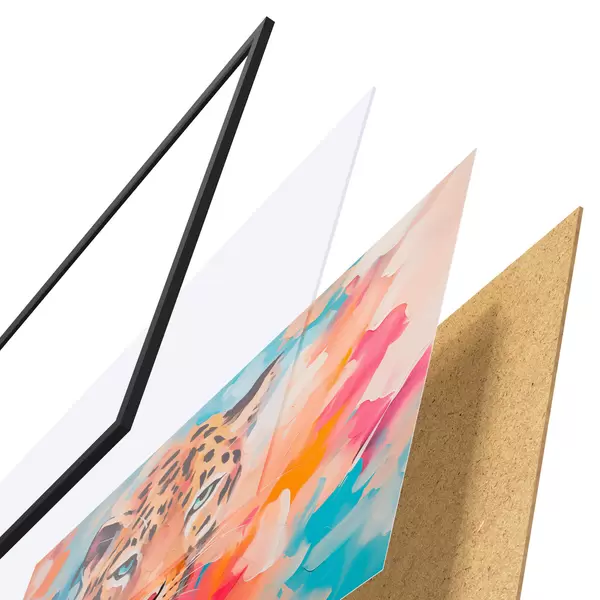 Il poster è composto da cornice, plexiglass, immagine stampata e supporto in truciolato. Il poster può essere immediatamente appeso alla parete grazie ai supporti sul retro.