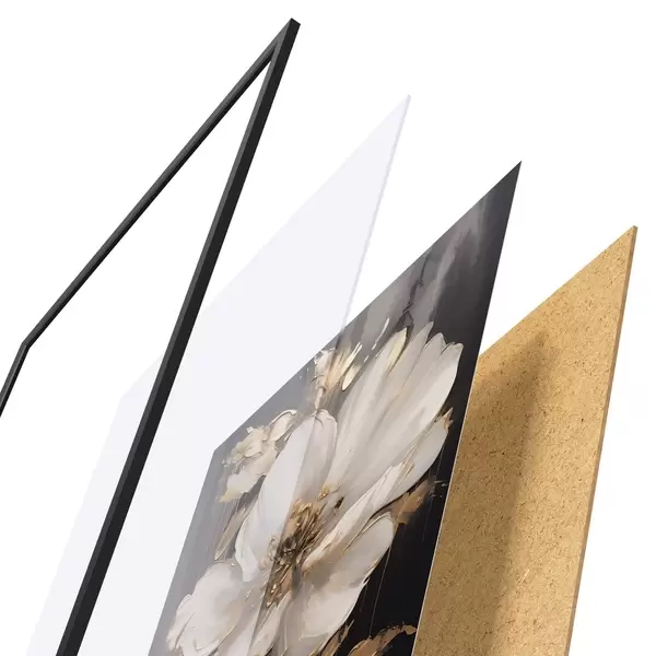 Il poster è composto da cornice, plexiglass, immagine stampata e supporto in truciolato. Il poster può essere immediatamente appeso alla parete grazie ai supporti sul retro.