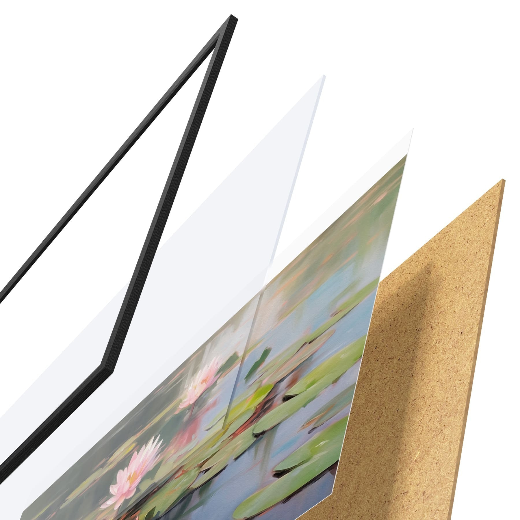 Il poster è composto da cornice, plexiglass, immagine stampata e supporto in truciolato. Il poster può essere immediatamente appeso alla parete grazie ai supporti sul retro.