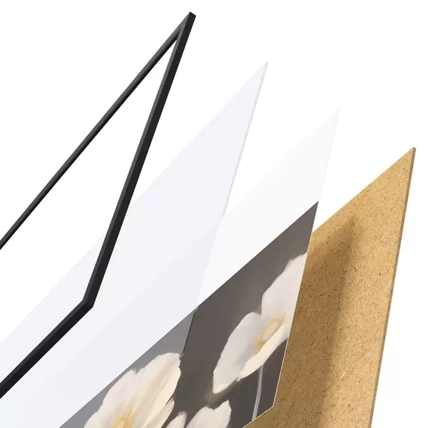 Il poster è composto da cornice, plexiglass, immagine stampata e supporto in truciolato. Il poster può essere immediatamente appeso alla parete grazie ai supporti sul retro.