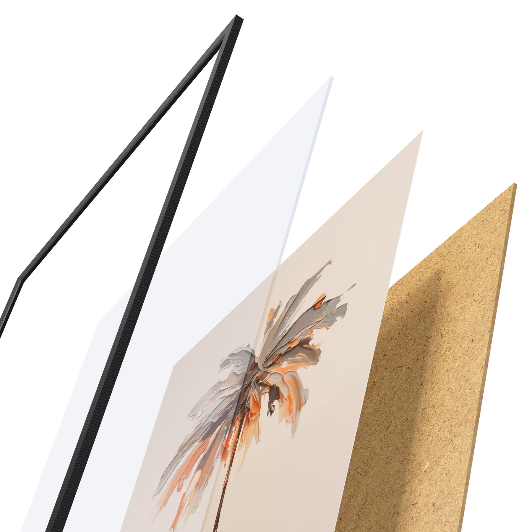 Il poster è composto da cornice, plexiglass, immagine stampata e supporto in truciolato. Il poster può essere immediatamente appeso alla parete grazie ai supporti sul retro.