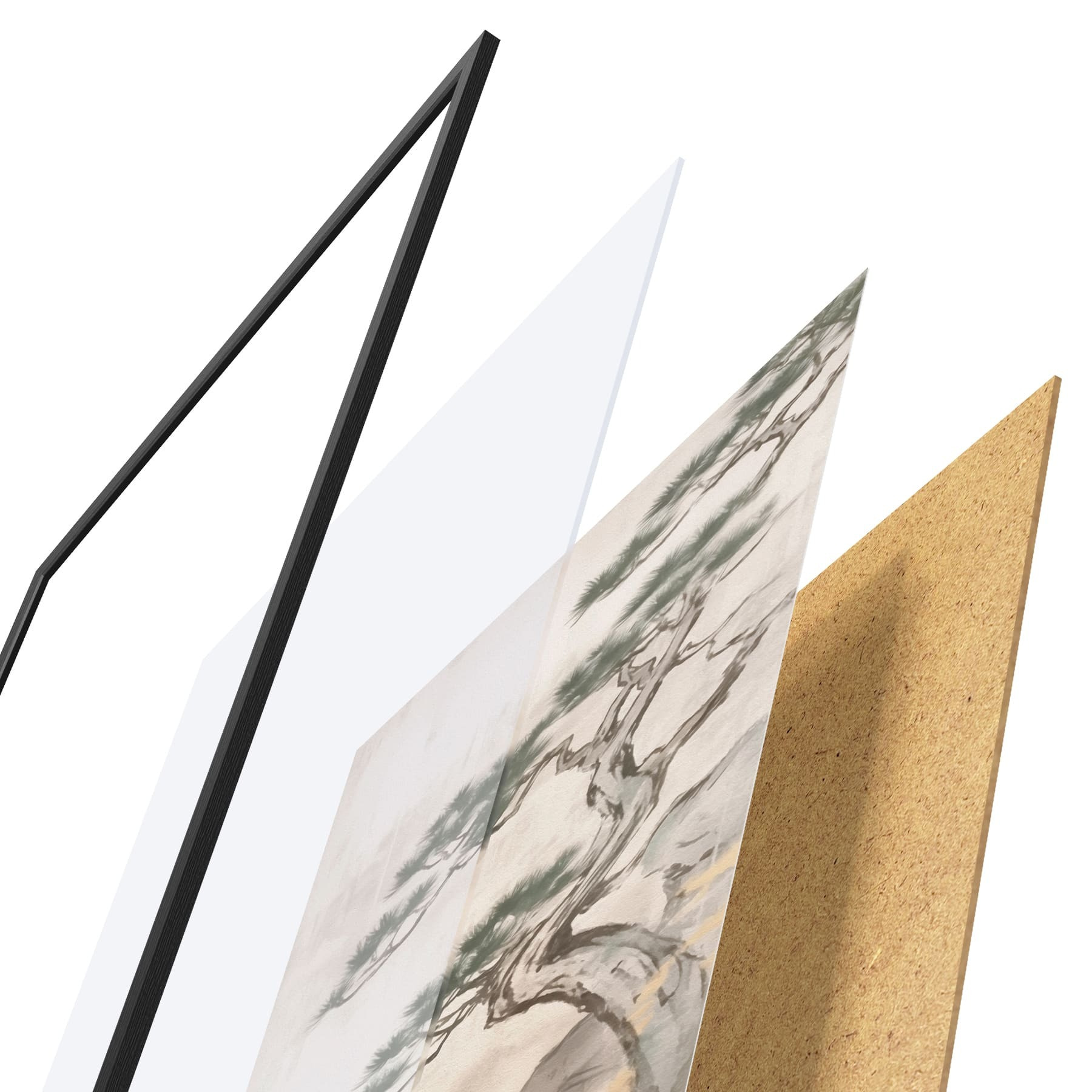 Il poster è composto da cornice, plexiglass, immagine stampata e supporto in truciolato. Il poster può essere immediatamente appeso alla parete grazie ai supporti sul retro.