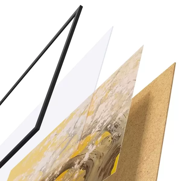 Il poster è composto da cornice, plexiglass, immagine stampata e supporto in truciolato. Il poster può essere immediatamente appeso alla parete grazie ai supporti sul retro.