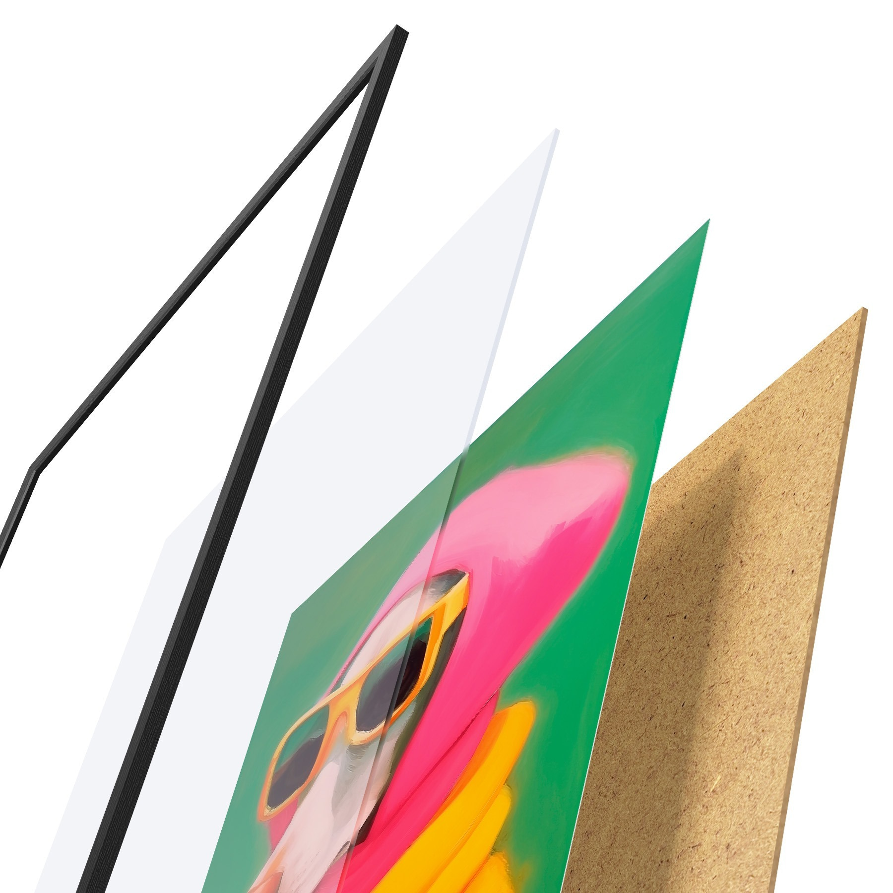 Il poster è composto da cornice, plexiglass, immagine stampata e supporto in truciolato. Il poster può essere immediatamente appeso alla parete grazie ai supporti sul retro.