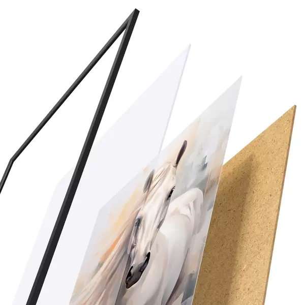 Il poster è composto da cornice, plexiglass, immagine stampata e supporto in truciolato. Il poster può essere immediatamente appeso alla parete grazie ai supporti sul retro.
