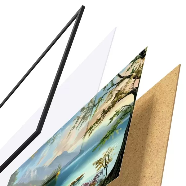 Il poster è composto da cornice, plexiglass, immagine stampata e supporto in truciolato. Il poster può essere immediatamente appeso alla parete grazie ai supporti sul retro.