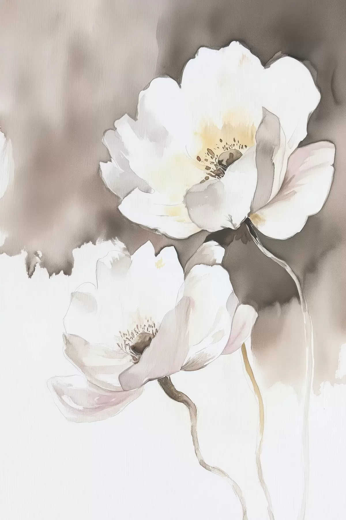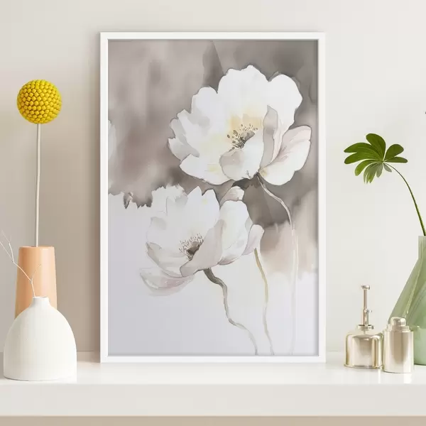 Poster Fiori bianchi su sfondo marrone nello stile della pittura ad acquerello Nr f43297